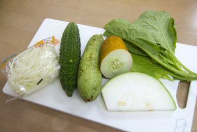 左らパパイヤ、ゴーヤー、ヘチマ、モーウィー、ニガナ、トウガン。