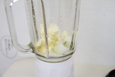 シェイクは豆乳でもできると聞いたので、同じ豆製品のジーマミー豆腐で作ってみたのです。