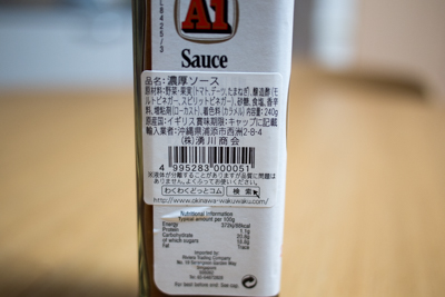 まずはA1ソース。イギリス製で「イギリス王室に生まれ、後にアメリカへ渡り、そして今沖縄で愛されている」ソースだそうです。このあたりは繰り返しになるけどnaokiの記事に詳しいです。大体どのステーキ屋にいってもそのステーキ屋さんオリジナルのソースとA1ソースが置かれていることが多いと思います。