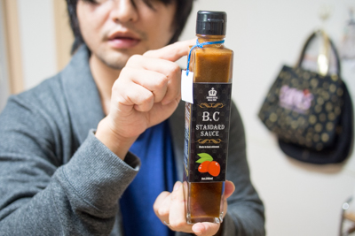 続いてはB.Cスタンダードソース。沖縄市の老舗ホテルクラウンホテルが発売しているソースで県産マンゴーや黒糖を使用したソースだそうです。原材料には米みそという表記もあり味噌や醤油などが使われている模様。