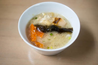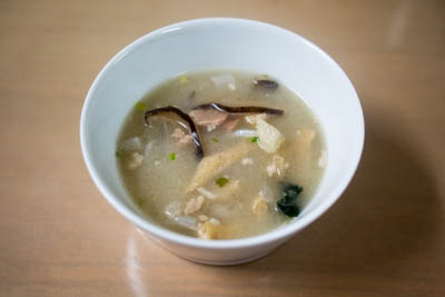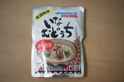 具材は豚肉、こんにゃく、油揚げ、椎茸。白味噌仕立てです。沖縄のスーパーでは「いなむどぅちみそ」「いなむどぅちこんにゃく」など専用の具材が売られてるのですが、そんなにいなむどぅちを作っている家庭は見かけないような気がするのですが気のせいでしょうか。