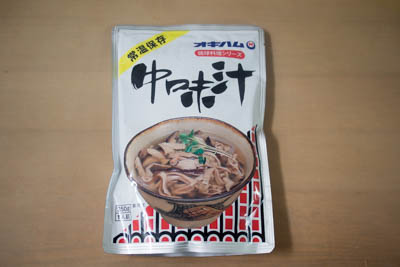 続いて沖縄の汁物といえば山羊汁。具材は山羊肉のみで味付けは塩ベースでしょうか。パウチを開けた瞬間から山羊の独特の臭いが漂います。好き嫌いがはっきり分かれますが、僕は割と好きです。