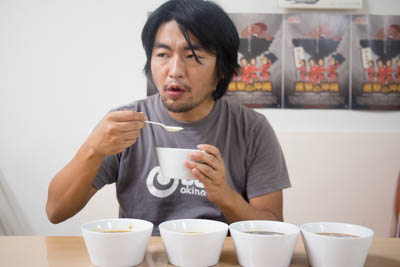 全ての汁物にカレールーを溶かし終えました。イカ汁汁とか見た目にほぼ変化がないものもありますが、それぞれ実際に食べてみましょう。沖縄の郷土料理をカレー化する試みはいかに…!