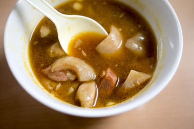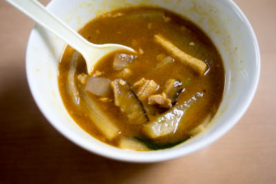 続いてあまり見た目に変化がない、イカスミ汁。味はほとんどイカスミ汁の味でした。イカスミの味って普段なかなか存在がわからないのですが、こうやってカレーにしてみるとかなり主張が強いことが分かります。