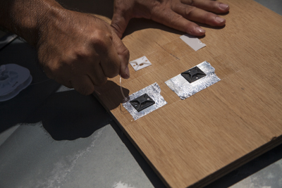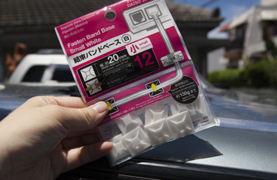 車の屋根にホックとして取り付けるのは結束バンドベース。
