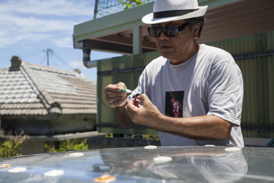 沖縄の炎天下のもと、お昼前から夕方までこの作業を続けたそうです。