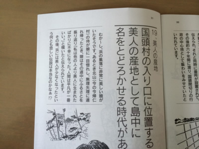国頭村浜区では美人にまつわる悲劇から美人が少なくなった、という言い伝え。「本当なのかなぁ!?」という文末になんか悲哀が漂います。