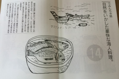 鏡地地区では太陽光で熱した石を魚の入った海水に入れて調理する「マーシャ」という料理があったそうです。