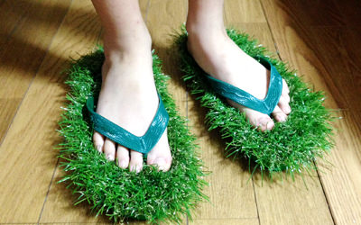 せっかくなので購入してみたが、足の裏にあたる人工芝の刺激が心地よく、意外と履き心地はよい気がした。
