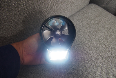 めっちゃプロペラが回ってます。発電時はプロペラの脇にある緑色のLEDが点灯するんですが、かなり明るく点灯してました。これは期待ができるのかもしれません。