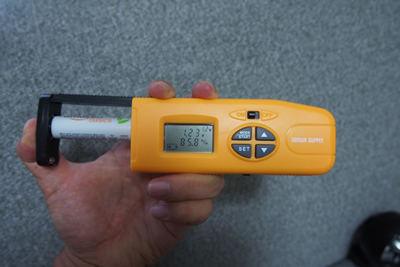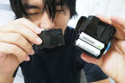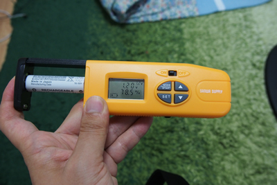 実際どのくらい発電できているのかを測るため、まずは2本の充電池の電力を測定します。ちなみにこのテスターも台風実験用に買ったままずっと保管しておりました。