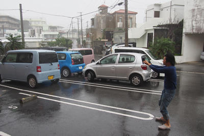 10月11日昼。沖縄は暴風域に入って風が強くなってきました。