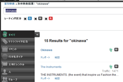 ホームがサバドみたいになっているのは無視して早速沖縄を探してみます。okinawaで検索すると早速そのものズバリokinawaという場所が。行ってみようではありませんか。