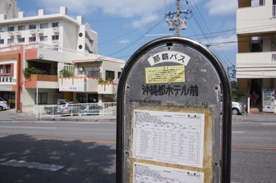 今月〜来月にかけては、那覇から名護までを結ぶ長距離路線、系統77番・名護東線のバス停を途中下車中。