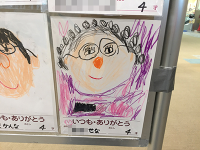 先日買い物中に見かけたショッピングモールで、近隣の保育園や幼稚園の子ども達が描いた父の日の似顔絵が貼り出されていました。