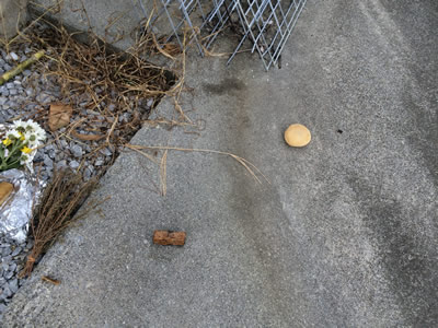 旧盆後に家々の前に残るウークイの跡。今回はそれを集めてみた。