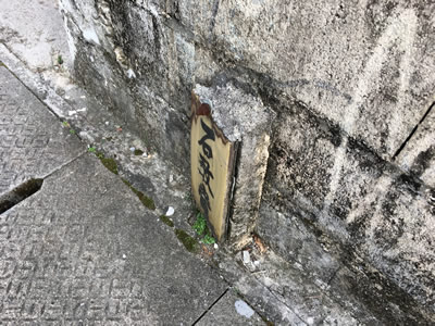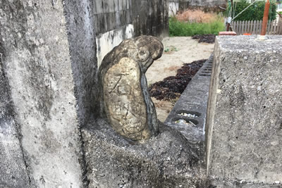 ちょっと変わった形の石にモルタル状のものが貼り付けられて、そこに石敢當の文字が書かれています。この石にこだわりがあったのか、なにかいわれがあるのかは分かりませんが若干怖い感じがします。