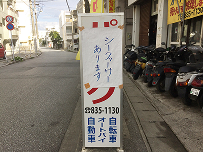 通勤途中にあるバイク修理屋さんがある日突然「シークヮーサーあります」という張り紙を出した。え?バイク修理屋さんなのに?