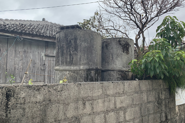沖縄では屋上の水タンクが有名だが、かつて水道が普及する前に使われていた天水タンクもまだ沢山残っている。今回はそれを紹介したい。