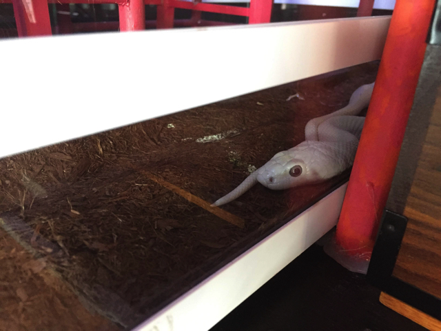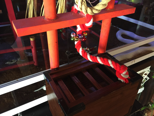 というわけで、那覇新都心のアクアリウムショップ『オキナワビアンコ』にある白ヘビ神社からお届けしました。