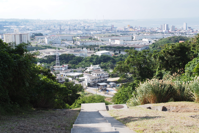 北谷の海沿いから浦添あたりまでを見渡すことが出来ました。この日は薄曇りだったのですが、晴れて空気が済んだ日ならば、もっときれいな景色が見えると思います。夜にこの場所に来る勇気はありませんが、夜景もきれいに見えそうですね。