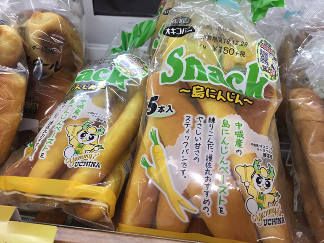 みんな大好きスナックパンに、中城村産の島にんじんペーストを練り込んだ新商品が発売されていた。