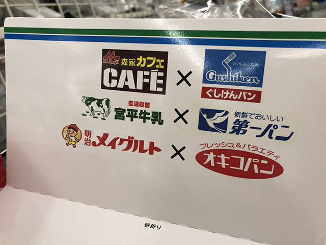 コラボ企業パンは3つ。それぞれ「沖縄森永乳業とぐしけんパン」「宮平乳業と第一パン」「沖縄明治乳業とオキコパン」です。