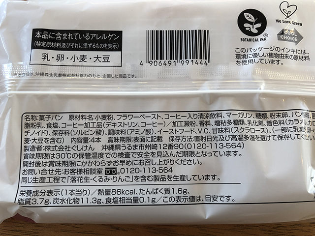 こちらは沖縄森永乳業とぐしけんパンがコラボした森永カフェを使ったソフトメイトカフェ 4本入。