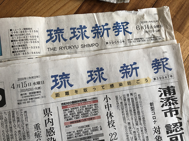 2020年4月15日から琉球新報の一面が変わっています。