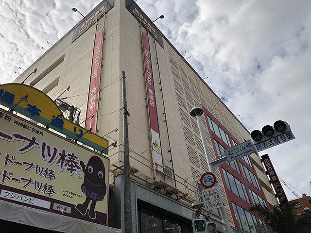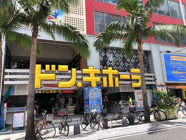 ドン・キホーテの看板の右上に、琉球かすりの図柄があるのがわかるでしょうか。