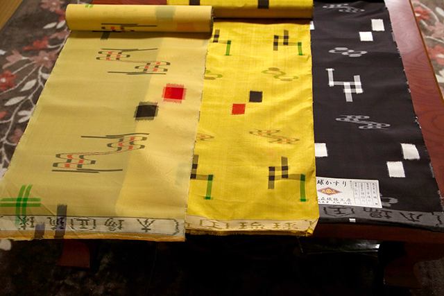 日本全国にありますが、沖縄にも琉球王朝時代から沖縄独自の図柄が織られ、琉球かすりとして人気です。