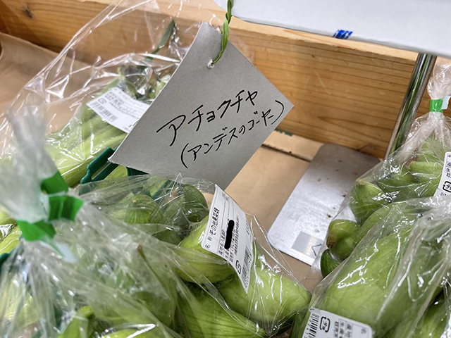 数年前からちょこちょことファーマーズマーケットで見る野菜「アチョクチャ」。