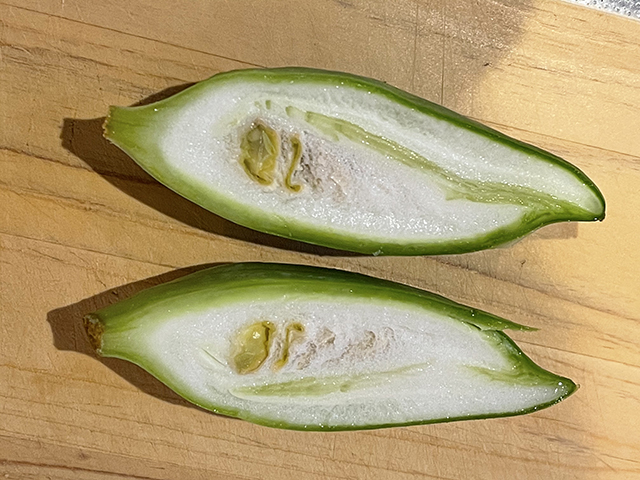 切ってみるとたしかに中のワタやタネのつき方がゴーヤーとそっくりです。