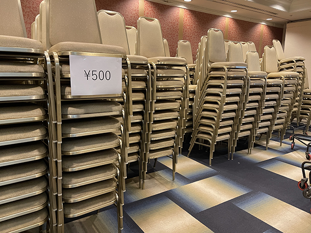 隣には披露宴で使われていただろう椅子。1脚500円です。