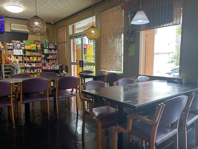 店内は日用品や食べ物が販売されているコーナーの奥に、いくつかのテーブル。30席ほどありそうです。