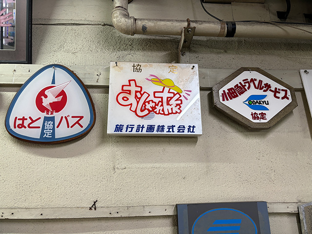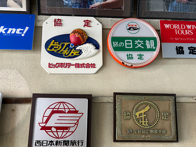 個人的に全然詳しくなくて恐縮なのですが、飾られているのは主に旅行会社の看板やバスの看板などのようです。
