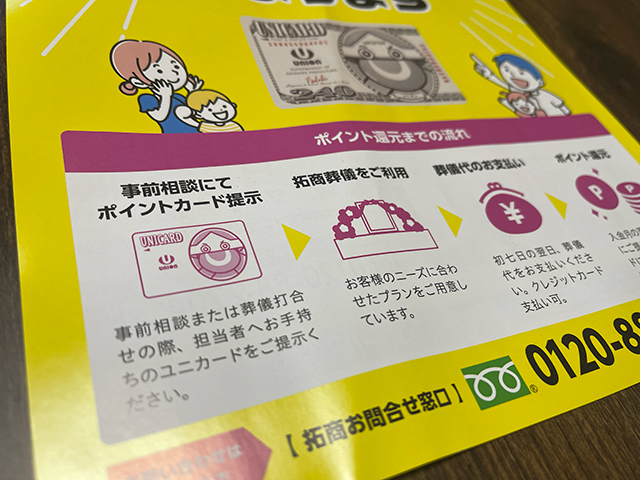 葬儀の拓商でお葬式をするとユニオンポイントが貯まるらしいです