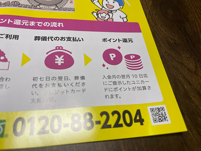 「拓商葬儀ご利用でユニオンポイントが貯まります」