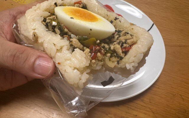 ご飯が四角く成形されており、その中に具が入ったお弁当スタイルとなっています。ABCランチみたいな定食ではなく、次世代型のおにぎりといったところでしょうか。