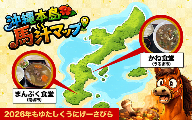 馬年だから、沖縄本島の馬汁MAPを作ろうと思いましたが、2025年末時点で確認できた馬汁が食べられるお店は2軒でした。