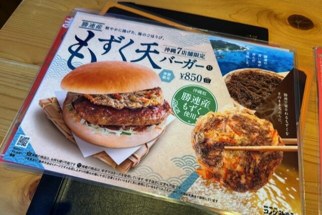 沖縄のコメダ珈琲限定で「もずく天バーガー」なる商品が発売されている。そのお味はいかに。
