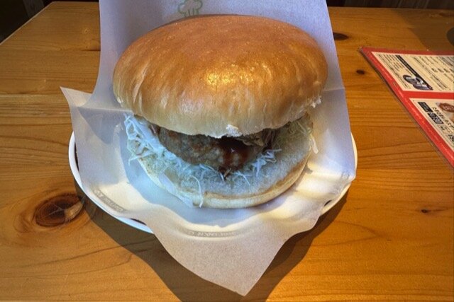 まぁそんなこと言われたら食べに行きますよね。刮目せよ。こちらが「もずく天バーガー」です。普通のバーガーのように見えますが…