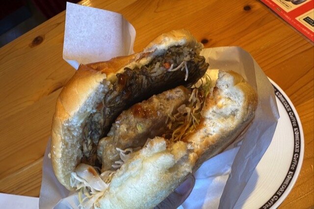 - 沖縄のコメダ珈琲、もずく天をパンにはさむ
