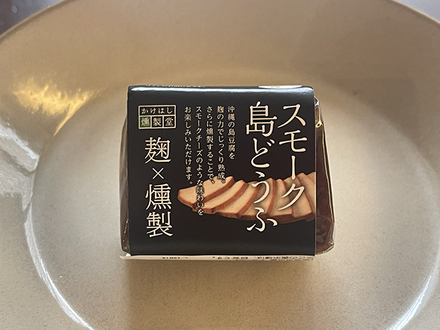 パッケージには「沖縄の島豆腐を麹の力でじっくり熟成。さらに燻製することでスモークチーズのような味わいをお楽しみいただけます。」とあります。
