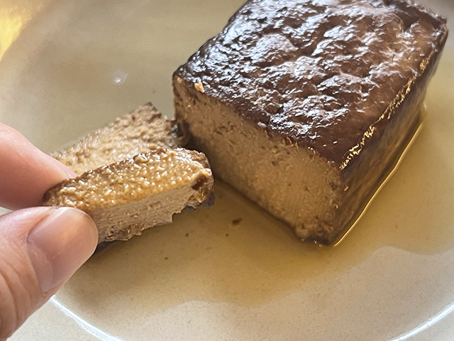 スライスして食べてみると、ほんのりスモークと、豆腐をぎゅっと濃くしたようなまろやかな味。