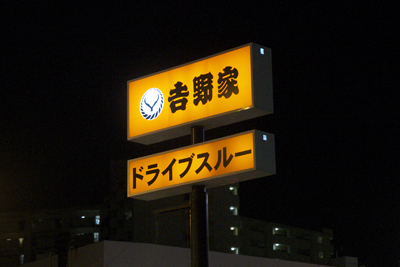 類似店がドライブスルーをやっているので一見違和感がないですが、吉野家のドライブスルーはとても珍しいのです。おそらく全国に数店舗。
