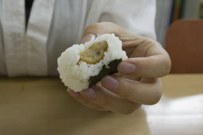 食感はお米、味はピーナッツ、ときどきコリコリとした歯ごたえ。自分が何を食べているのか迷う。そんなおにぎりでした。