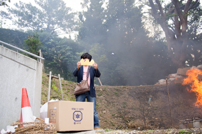 証拠隠滅も兼ねて、お焚き上げの炎に投入。