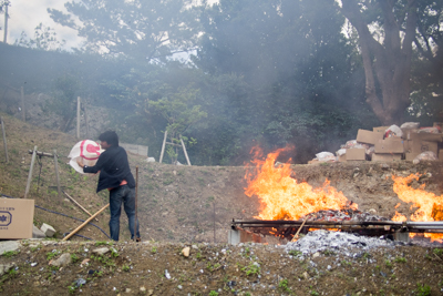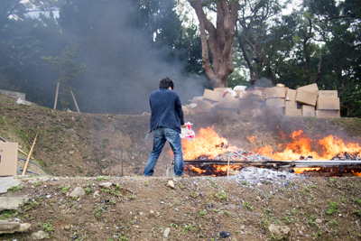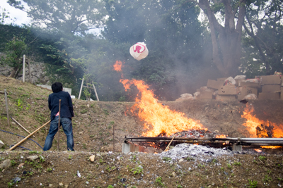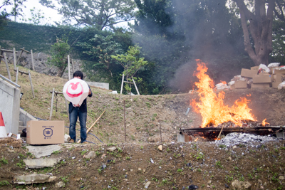 せっかくなのでDEEokinawaの過去記事で使った縁起物(?)も燃やせないかという期待を込めて。