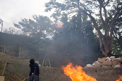 そして一通り儀式が終わり、いよいよ縁起物に火がつけられます。